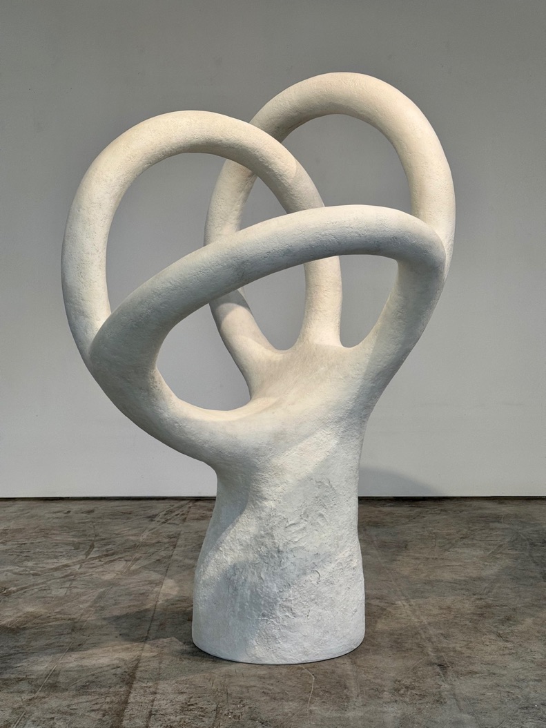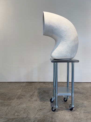 The Semi Circular Sculpture, 2023, 62”x 44”x 38”, Papier-mâché on steel and wood