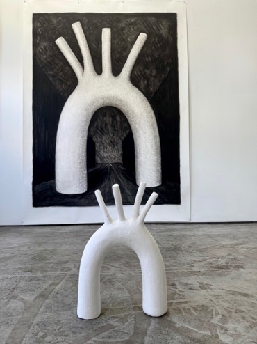 Other bodily structures—like the stapes bone of the inner ear and the aortic arch of the heart—continue to inspire my sculptures and large-scale charcoal studies. Aorta Arch, like Uvula Arch, is conceived as a monumental passageway. Though I’ve only completed a maquette and a large drawing, these give a strong impression of its intended scale and presence.