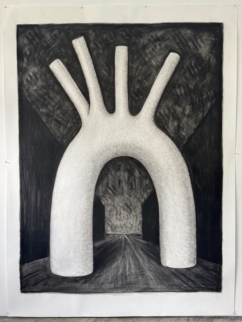 Study for Aorta Arch (in the Desert) 2024, charcoal on paper, 86” x 59”